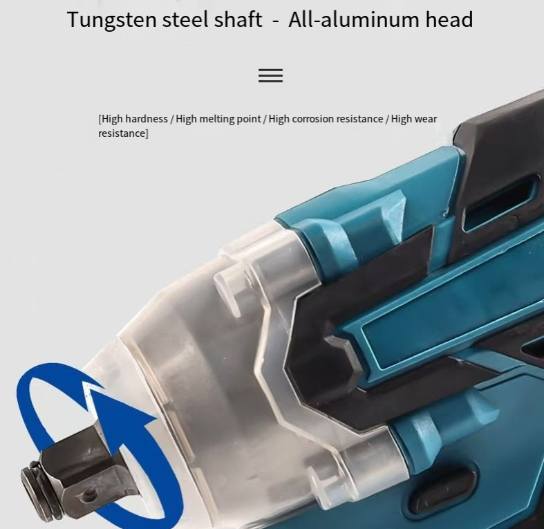 Equipped with a full copper brushless motor, compared to brushed motors, it offers greater power, longer lifespan and lower noise. The tungsten steel transmission shaft and all-aluminum head design feature high hardness, excellent wear resistance and corrosion resistance, enabling it to easily handle large torque disassembly and assembly requirements. Whether it's disassembling car tires or tightening heavy screws, it can complete the tasks efficiently, eliminating sluggishness and effort.