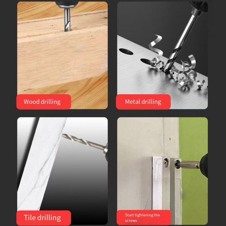 The kit includes sockets, drills, and bits, covering various scenarios such as wood drilling, metal drilling, tile drilling, and screw tightening. Combined with the impact wrench body, it can perform assembly, drilling, and screw tightening operations, allowing one tool to meet various operations such as auto repair, decoration, and plumbing installation, saying goodbye to the hassle of frequently changing tools.
