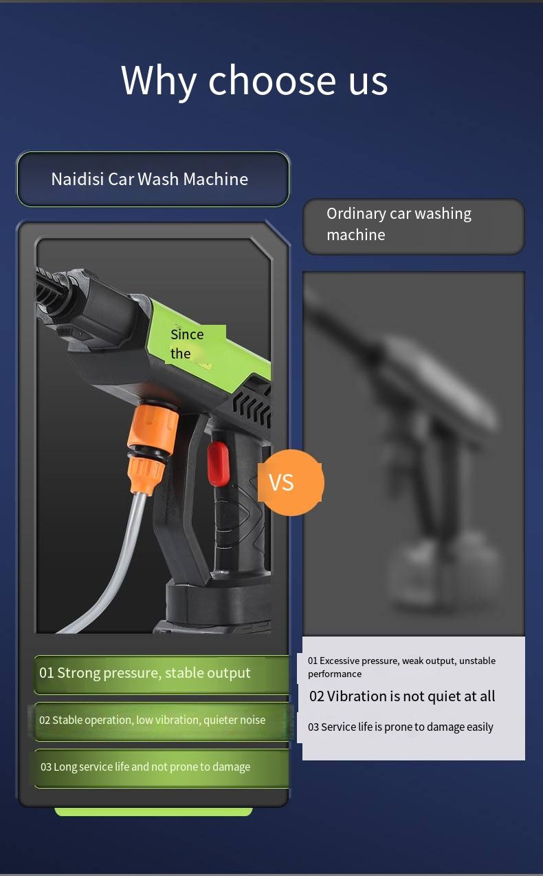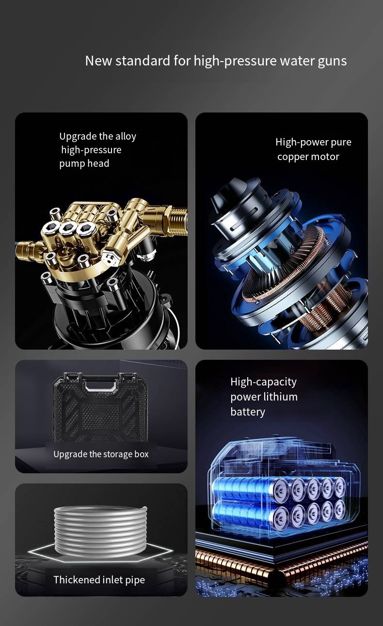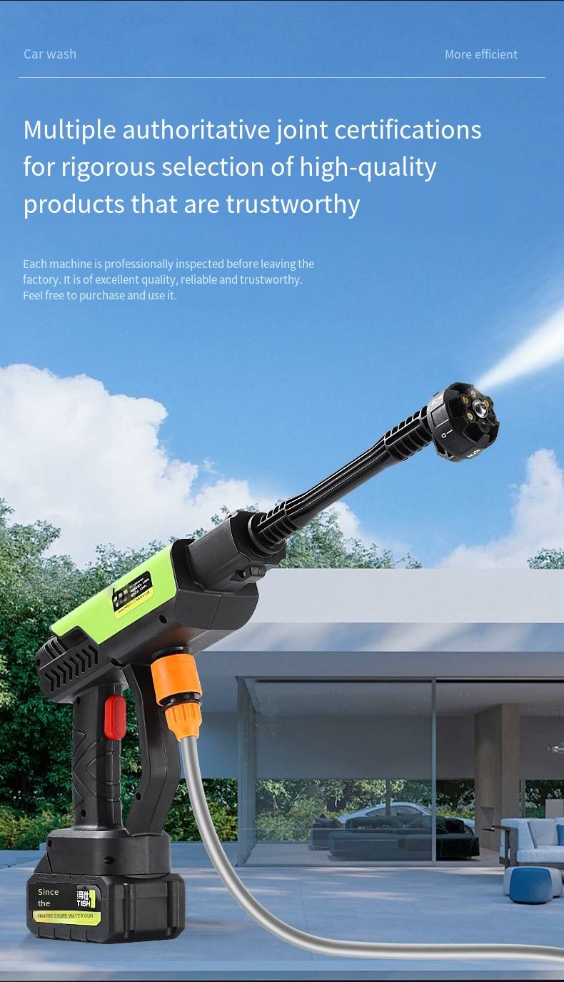 Are you still frustrated by the difficulty of manual car washing and the limitations of plug-in cleaning? This wireless lithium battery high-pressure car washing water gun completely breaks through the scene restrictions and creates a one-stop home cleaning solution. The entire machine adopts a portable and lightweight design, allowing women to operate it easily with one hand. The wireless design eliminates the need for power cords, and it can be used freely in balconies, courtyards, and outdoor camping areas.