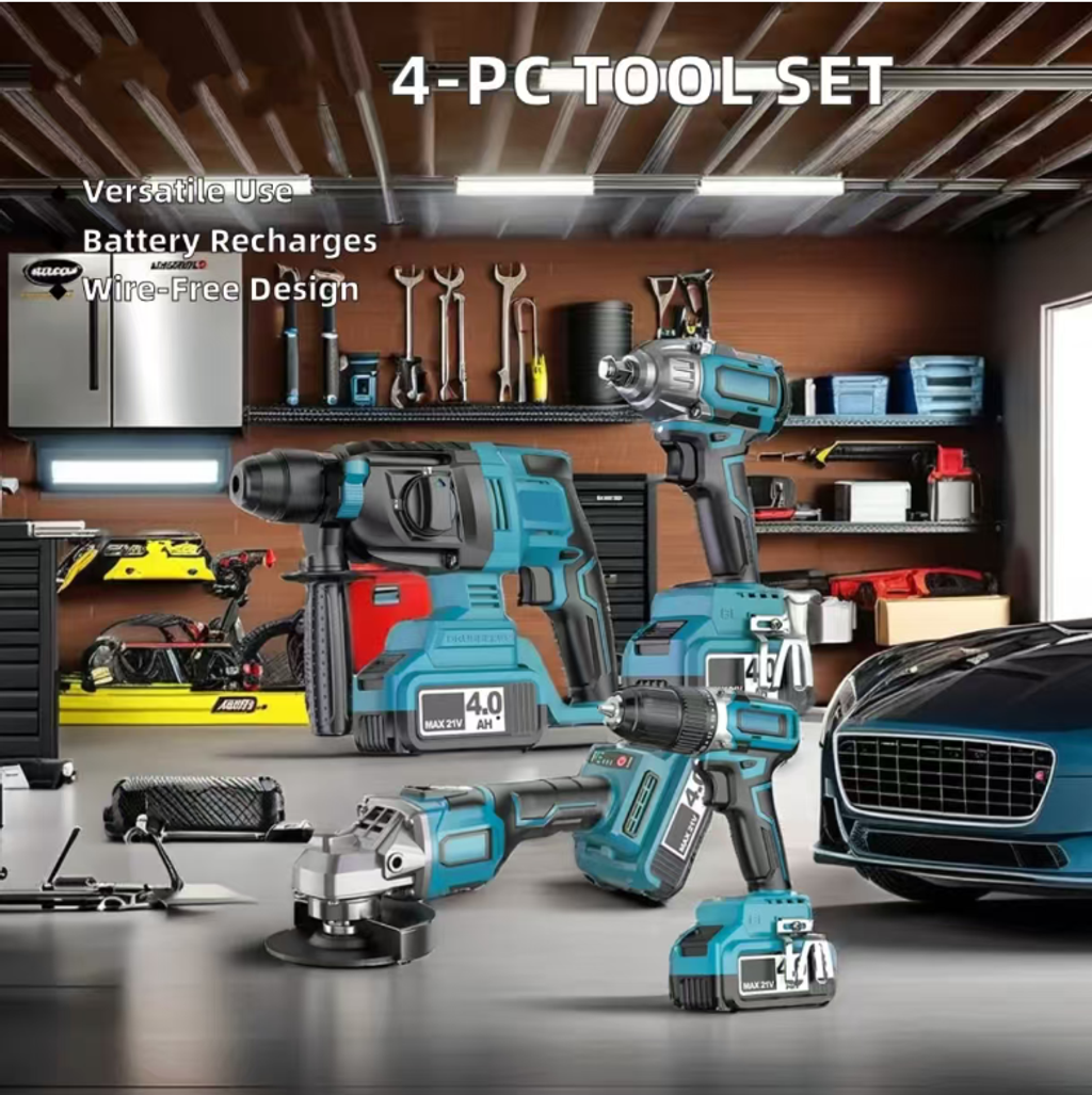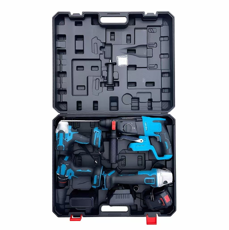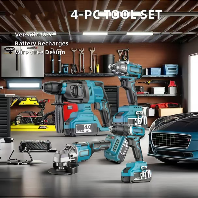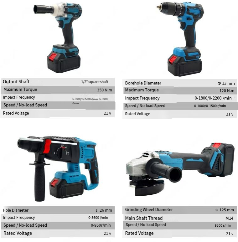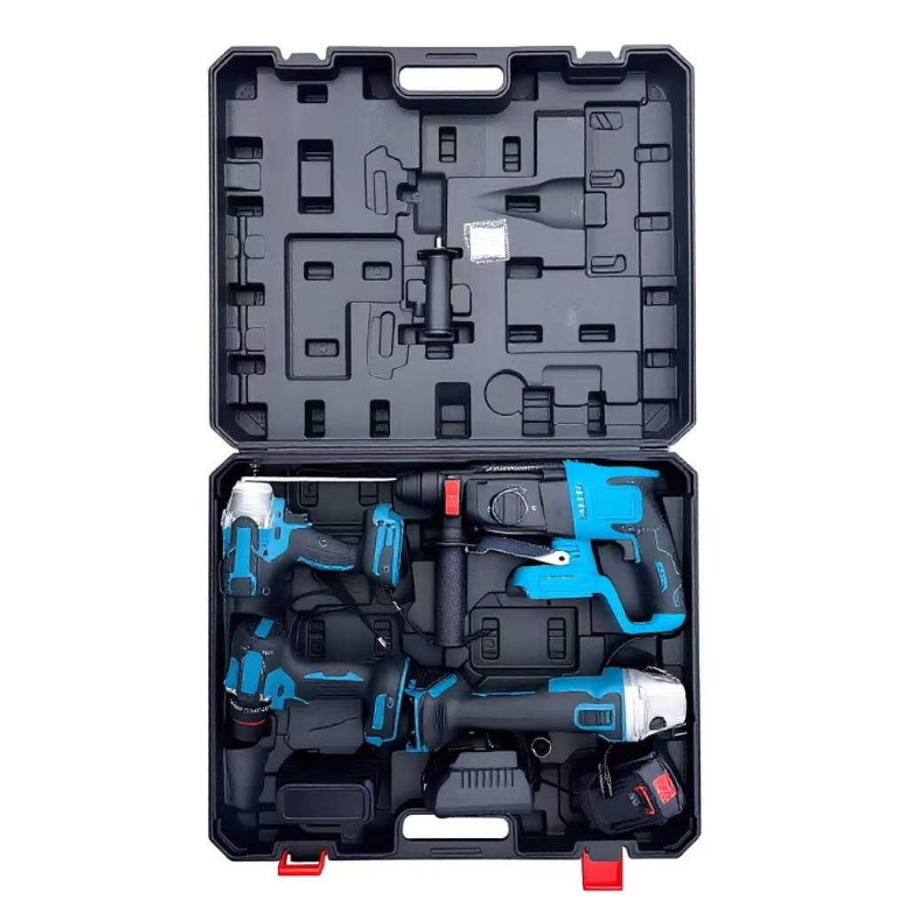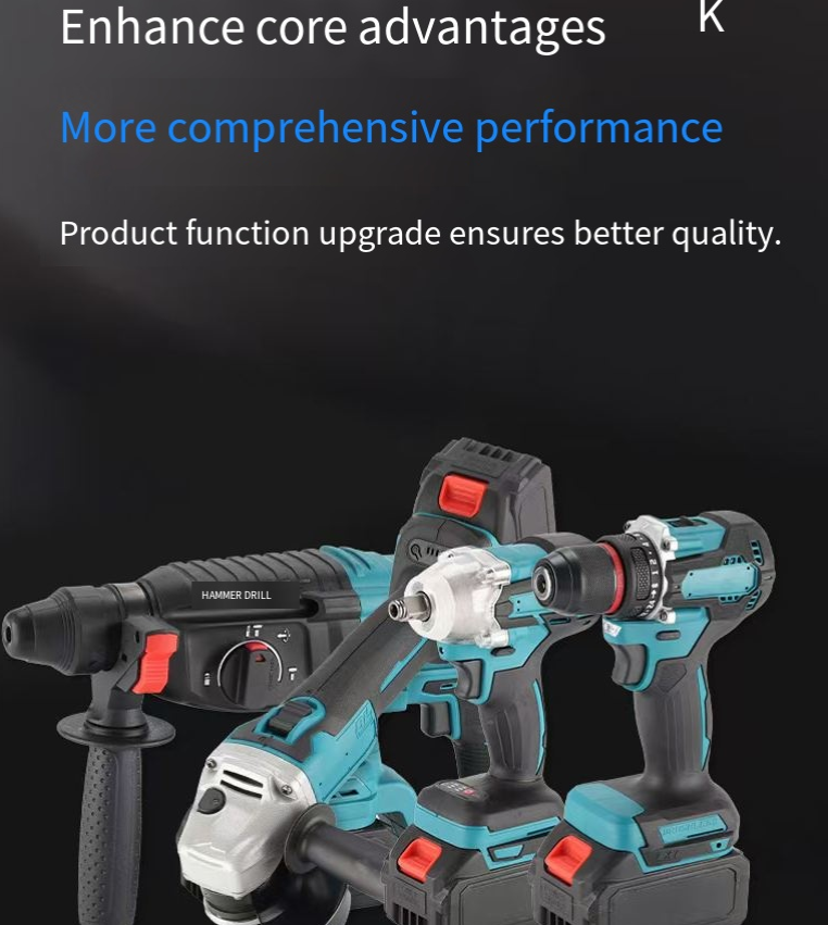 Are you still troubled by the frequent replacement of tools for different operations such as decoration, auto repair, and infrastructure construction? This industrial-grade lithium battery tool kit integrates four core tools: electric hammer, electric wrench, hand drill, and angle grinder. Equipped with a large-capacity lithium battery, it becomes a versatile partner for professional workers and DIY enthusiasts, efficiently addressing all scenarios such as drilling, disassembly and assembly, cutting, and grinding.