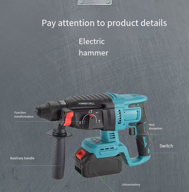 Electric hammer: Industrial-level impact power, easily breaking concrete and brick walls, suitable for decoration renovation and infrastructure drilling;