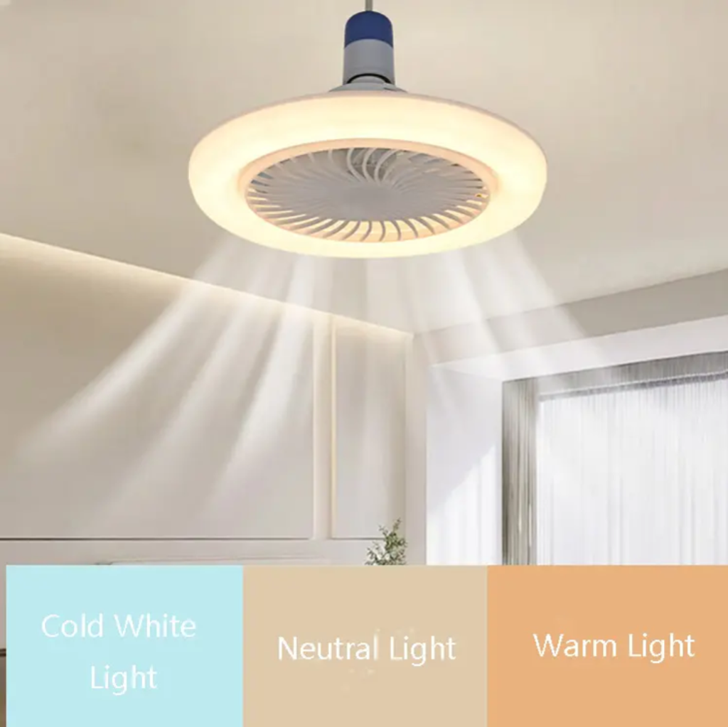 Place your order today and you will receive 2 lamp head fan lights.,The wind-blown soft light magic device, welding the coolness onto the ceiling, combining lighting and blowing air into one. E27 screw type, no need for drilling holes. Self-installation in 5 minutes is super convenient. 3 gentle light colors for eye protection, 3 silent gentle winds to dispel heat, invisible fan blades without causing hair to curl or accumulate dust. With one lamp, you can achieve double comfort!