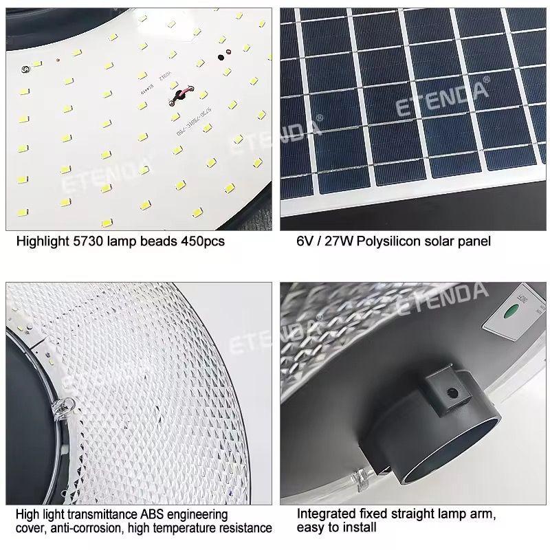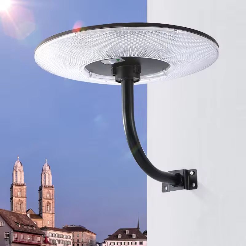 Still troubled by the cumbersome wiring and high electricity costs for outdoor lighting? This circular UFO solar street lamp integrates efficient solar power generation, human body sensing, and landscape aesthetics. It is the ideal lighting choice for villas, residential areas, and squares, making the outdoor space both safe and stylish.