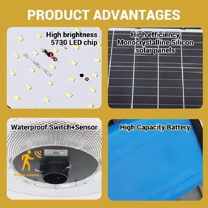 This new model UFO solar street lamp features a circular UFO shape, is powered by efficient solar panels, offers zero electricity cost and is more environmentally friendly. It is equipped with intelligent human body sensing technology, which makes the light intensity higher when people are present and lower when they leave. It is IP65 waterproof and durable. It is the ideal choice for landscape lighting in villas, residential areas and squares.