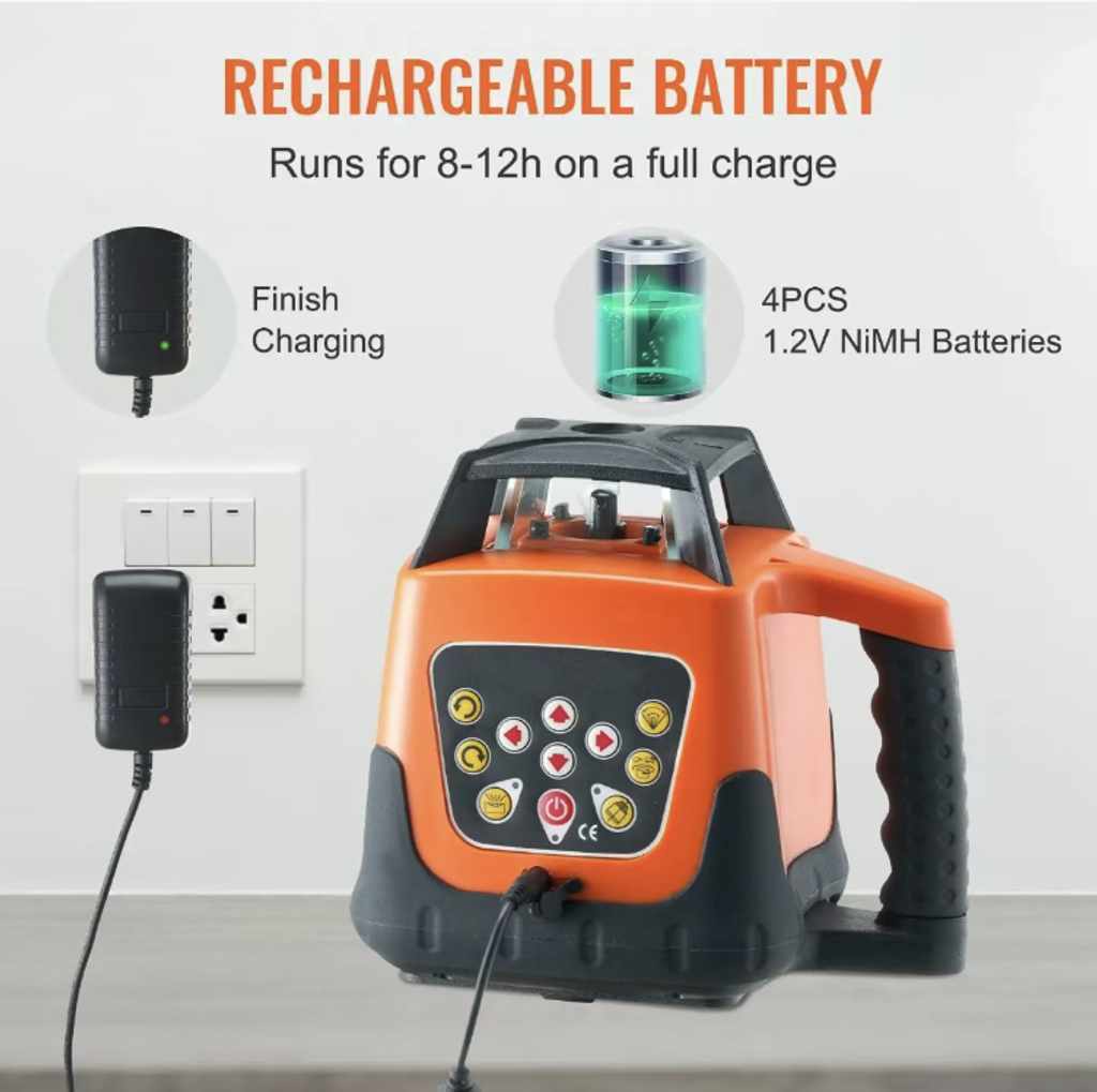 Equipped with high-brightness red laser, the accuracy can reach ±1/9 inch within a distance of 33 feet. When combined with the matching receiver, the effective working distance can be extended to 2,000 feet. Whether it is for leveling large areas of flooring, laying floor tiles, or setting up wall lines, it can provide a stable and reliable baseline, ensuring that each brick and each line fits perfectly.
