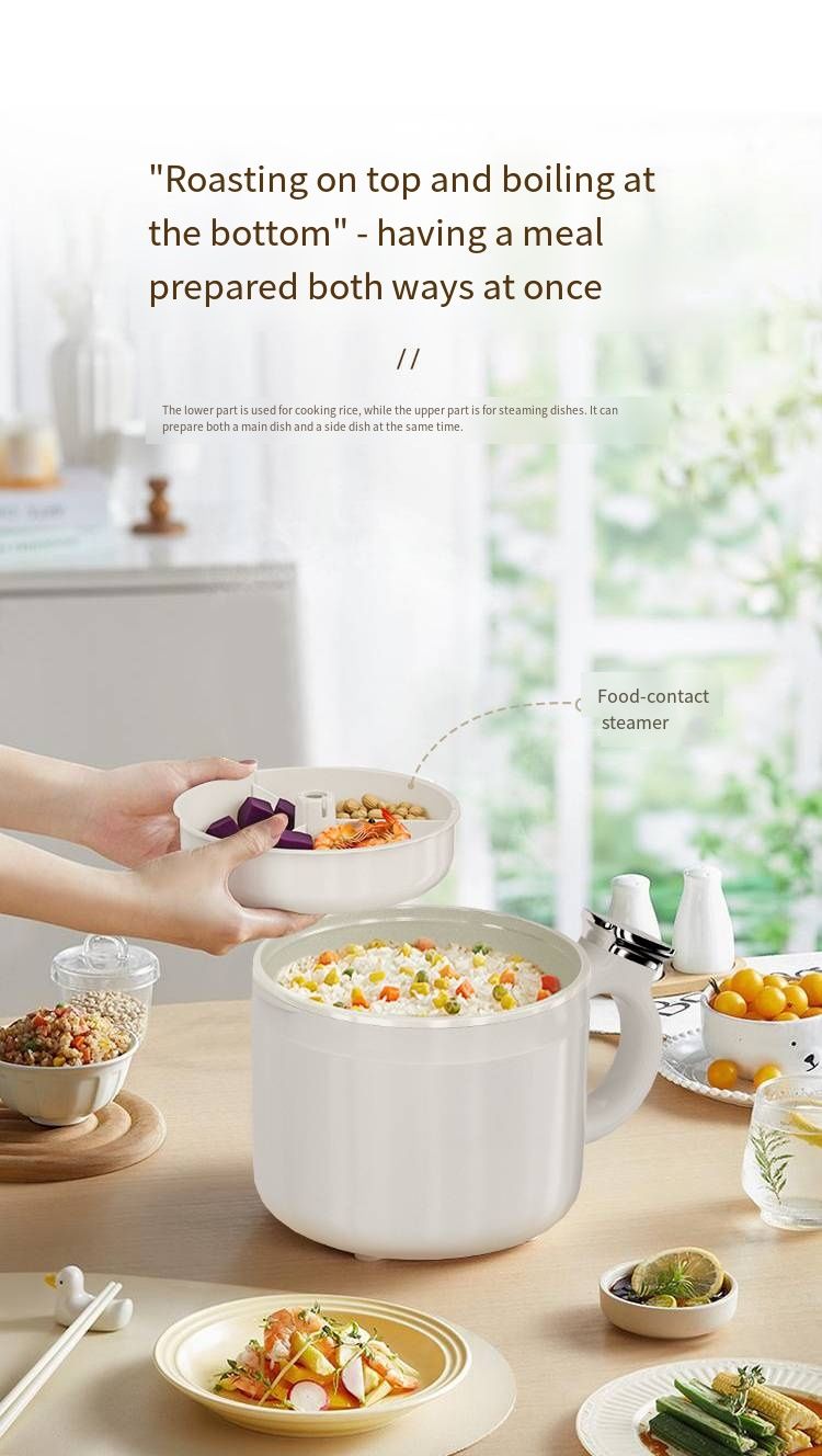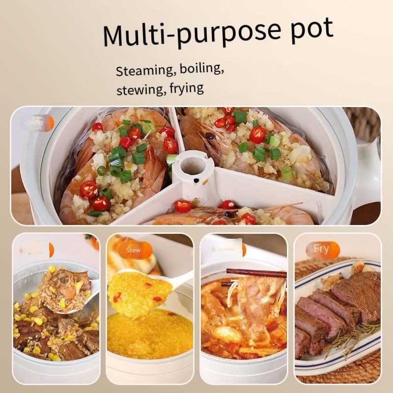 This single-person exclusive multi-compartment, non-cross-flavor electric cooking pot with pre-appointment and heat preservation function is proficient in steaming, boiling, braising, stir-frying, deep-frying and other cooking. It is a portable electric hot pot for students and office workers. It is easy to clean and has a non-stick inner pot. It is a health-preserving cooking pot. Pre-order before going to bed and enjoy hot porridge in the morning