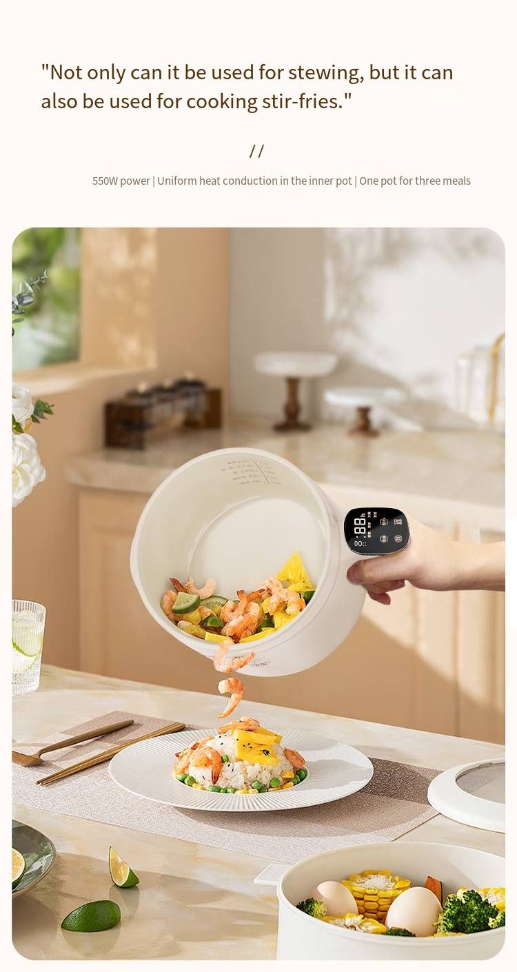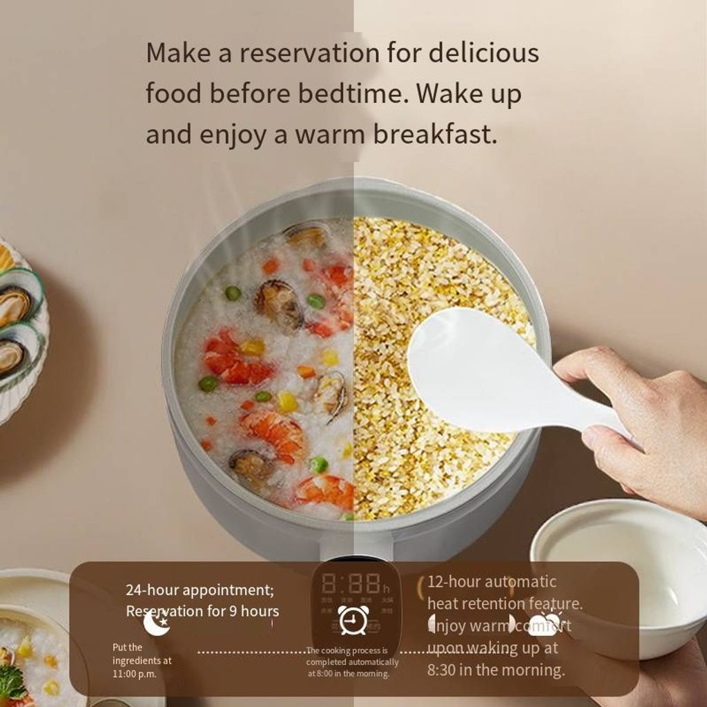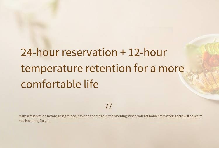 Even when dining alone, you can still enjoy a sense of ceremony. This multi-functional cooking pot is your mobile little kitchen. The 24-hour intelligent reservation function enables you to prepare rice and ingredients before going to bed the night before. The next morning, you can enjoy warm porridge without waiting and start your day full of energy.With 12-hour long-lasting heat preservation, even if you work overtime or come home late, you can still enjoy warm meals at any time.