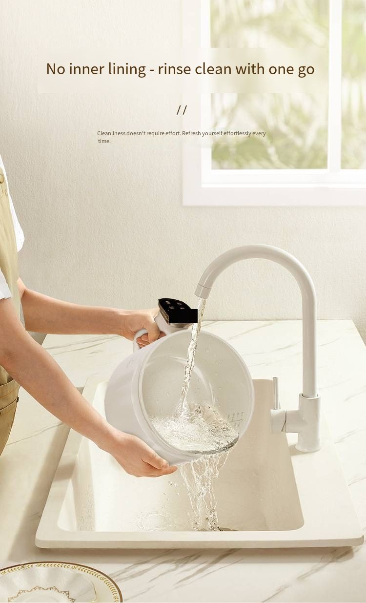 One of its major highlights is its IPX2 waterproof design. After cooking, it can be directly rinsed under the faucet without any hygiene dead corners, completely solving the pain point of traditional cookware being difficult to clean. The non-stick inner liner material not only conducts heat evenly and is less likely to stick to the bottom, but also can be cleaned with just a wipe, greatly reducing the burden of cleaning after meals.