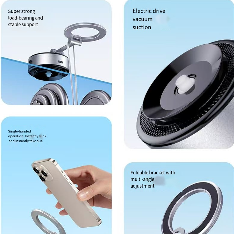 When using the in-car navigation, the stand keeps shaking and makes it hard to see the road clearly. Sitting on the table to watch TV causes discomfort in the neck due to the awkward viewing angle. Carrying the stand with you takes up space, and the adhesive type stand leaves adhesive residue that can damage the car interior. - This zinc alloy vacuum super-strong adsorption magnetic phone stand is an all-round support for "phone-dependent people". It doesn't require adhesion or screwing, and it stays stable when placed. It has multi-angle rotation + folding portability, providing a comfortable "resting place" for the phone in any situation.