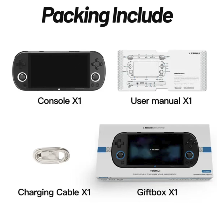 Are you still frustrated by not being able to play all the games on GBA, arcade machines, and PSP? This TRIMUI SMART PRO open-source IPS handheld device, with its open-source system, high-definition IPS screen, multi-platform compatibility, and convenient user experience, allows you to relive the classic arcade and handheld games with this single device, and embark on a retro gaming journey anytime and anywhere.