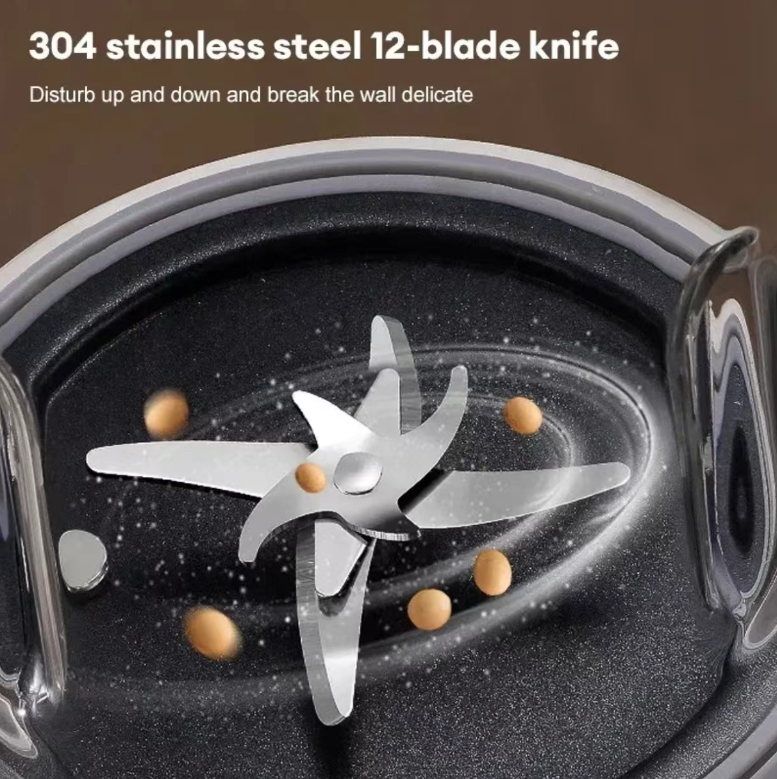 - 12-blade stainless steel blade automatic non-filter self-cleaning soy milk grinder with broken-cell function