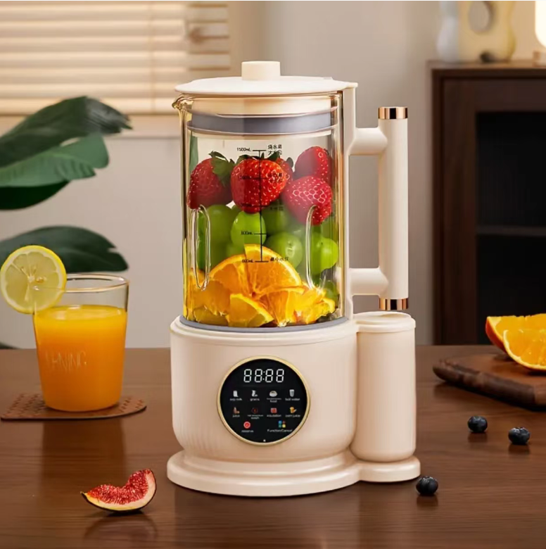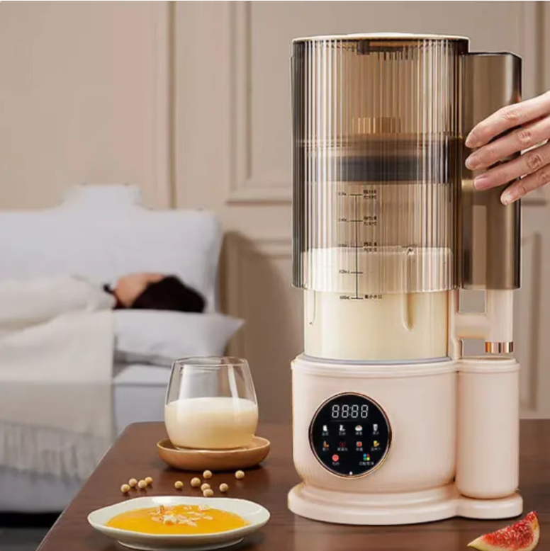 Vintage cream-style silent blender, running at a low noise level of 48dB, does not disturb sleep. With a 1500ml large capacity, it can meet the needs of the entire family. It can handle 8 functions such as making soy milk, rice porridge, and juice all at once. It supports预约 and automatic cleaning. It is smooth and free of residue without the need for filtration. Its appearance is as exquisite as its performance. It is an ideal choice for a gentle breakfast.