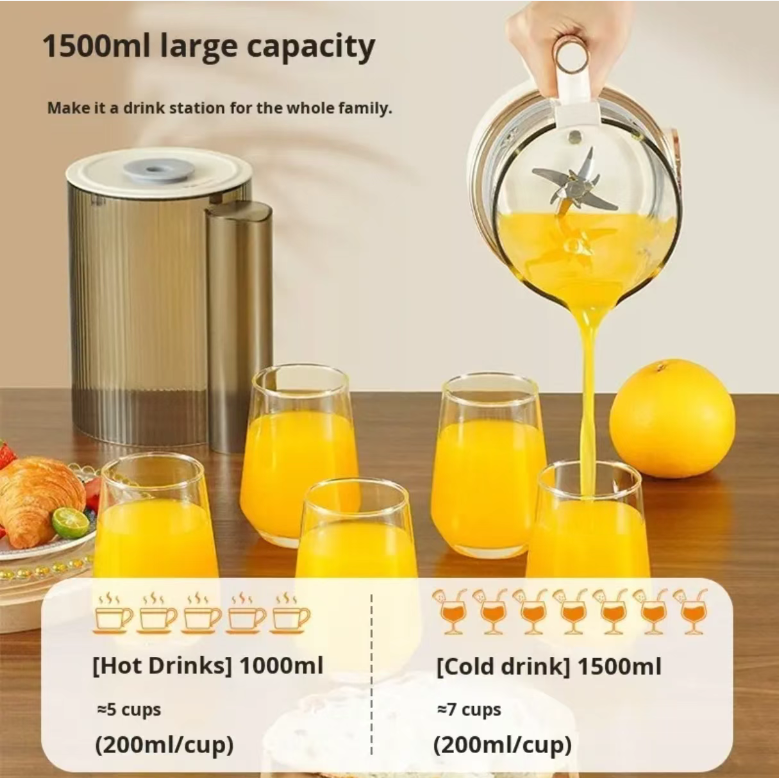 It is equipped with a double-layer soundproof cover and a silent motor, with a running noise as low as 48dB, equivalent to the quietness of a library. No longer need to tiptoe when making soy milk or making rice porridge in the morning. Your family can sleep in comfortably while you enjoy the deliciousness. With a 1500ml large capacity, it can meet the drinking needs of 3-4 people. Whether it's breakfast for a family of three or drinks for a small gathering of friends, it can handle it easily.