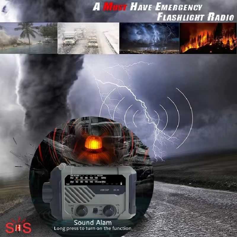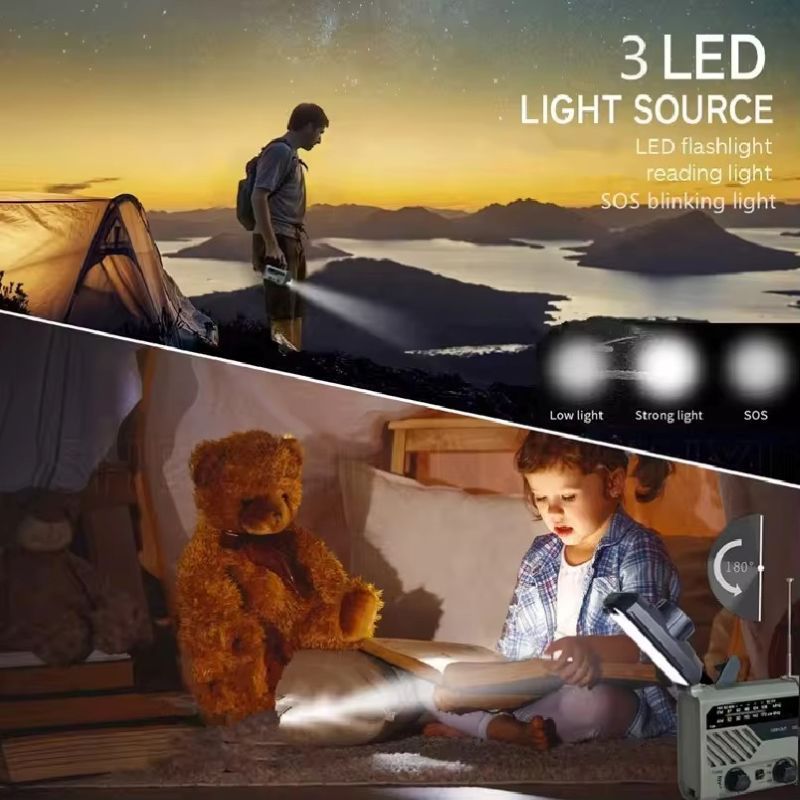 Are you still anxious about communication and power outages during sudden disasters or when you get lost outdoors? This all-in-one disaster-prevention radio, which combines hand-crank power generation, solar charging, SOS alert, and emergency lighting, is a reliable companion for home emergency kits, outdoor exploration, camping and hiking. It enables you to stay in contact and maintain hope during crisis situations.