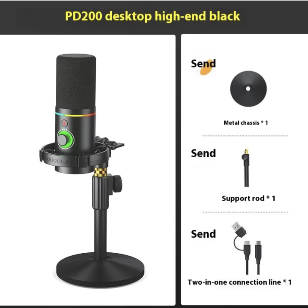 Are you still bothered by the noisy audio during live streaming, the excessive background noise in recording, the thin voice in dubbing, and the complicated connection of equipment? The Shank PD200X desktop dynamic microphone is specially designed for computer desktop live streaming, recording and dubbing, combining professional dynamic microphone pickup, low-noise high-definition recording, plug-and-play functionality, and desktop portability. It is a professional microphone for content creators, ensuring that every sound is clear and full of quality.
