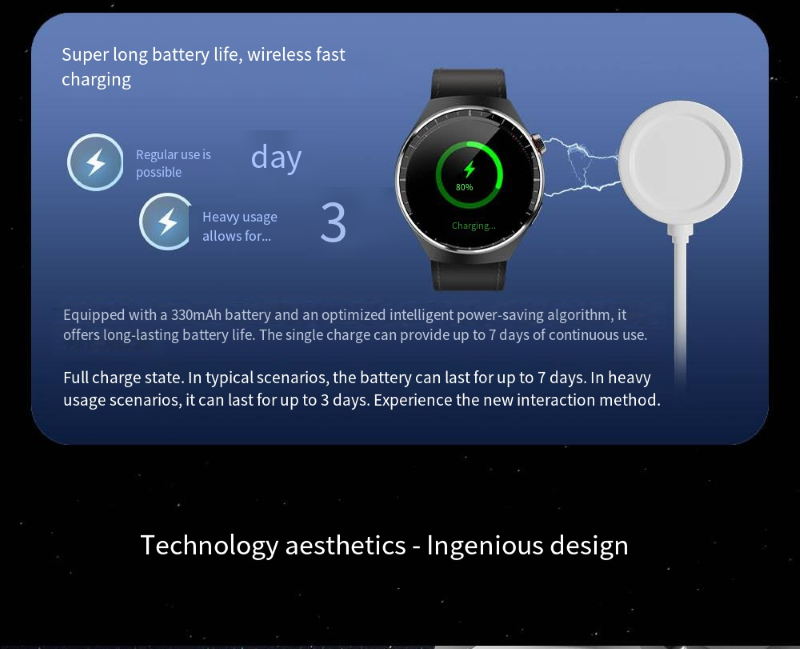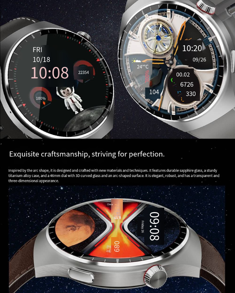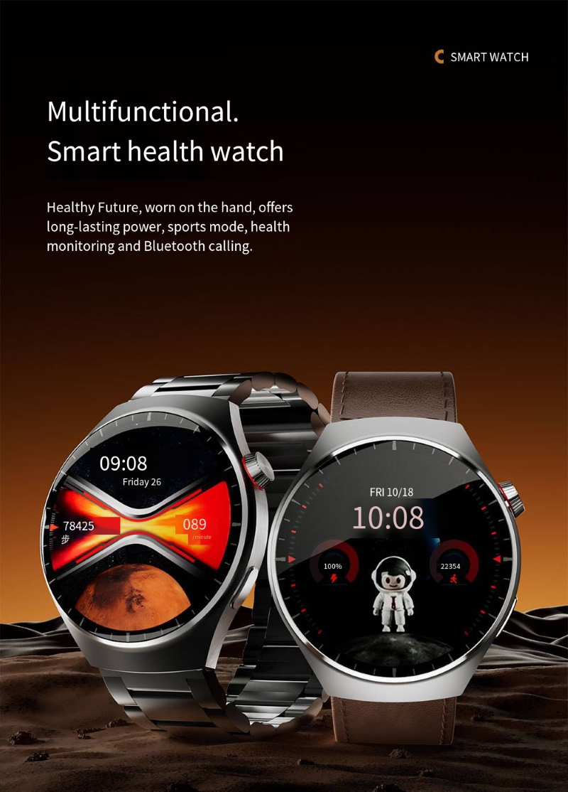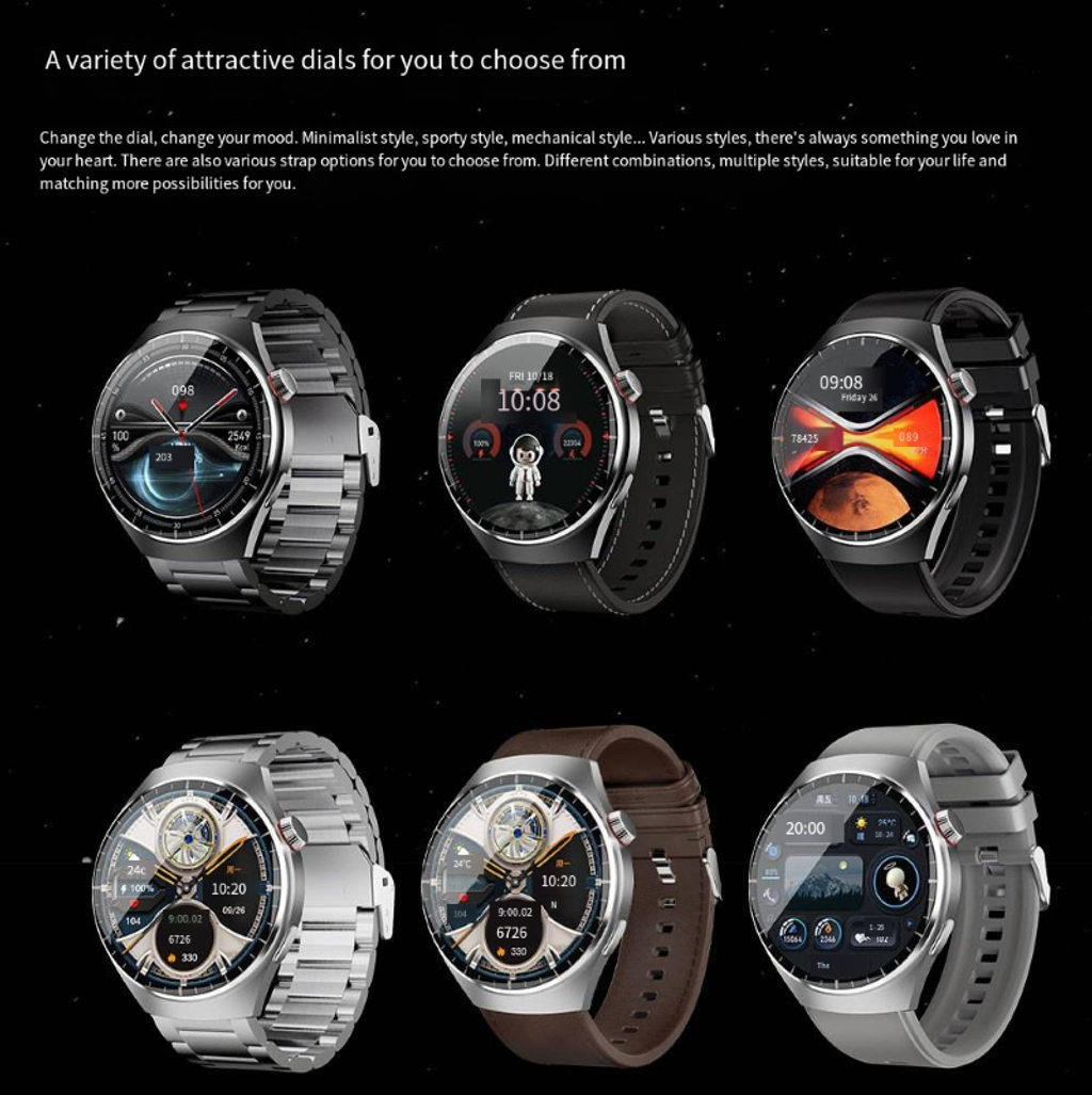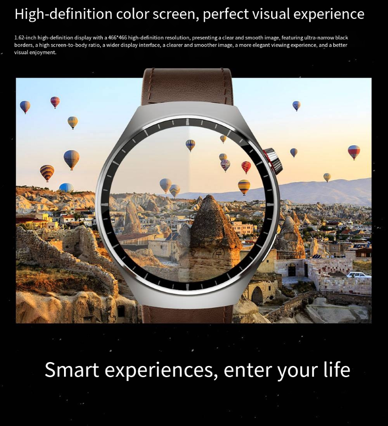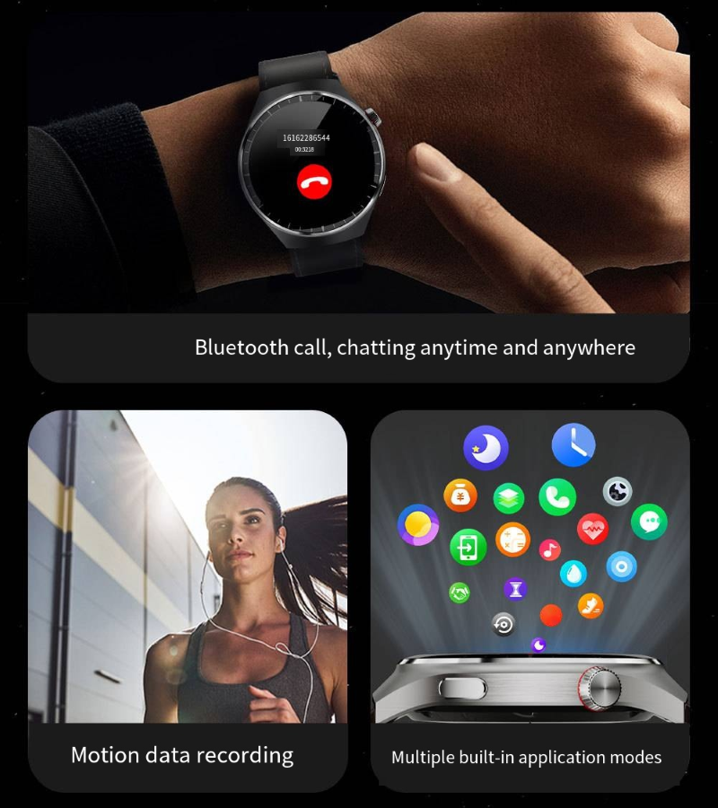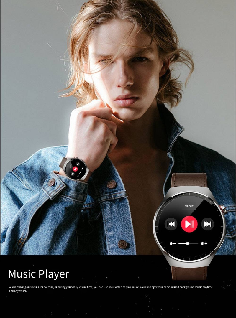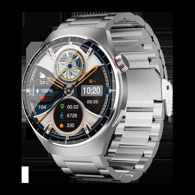 The smartwatch features a 1.62-inch AMOLED ultra-clear curved screen with a 466*466 high-resolution display that is clear and detailed. It is equipped with a stainless steel texture body and comes with three different style straps, which can be easily adapted to business, casual, and sports scenarios. It supports heart rate and blood oxygen monitoring, exercise step counting, Bluetooth calls, and other functions. It is an all-round wrist companion that combines appearance and functionality.