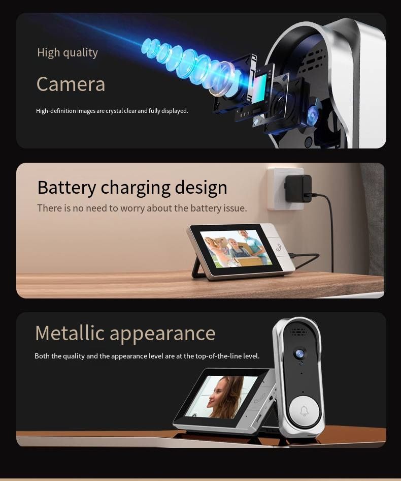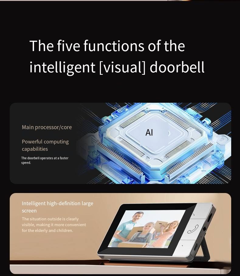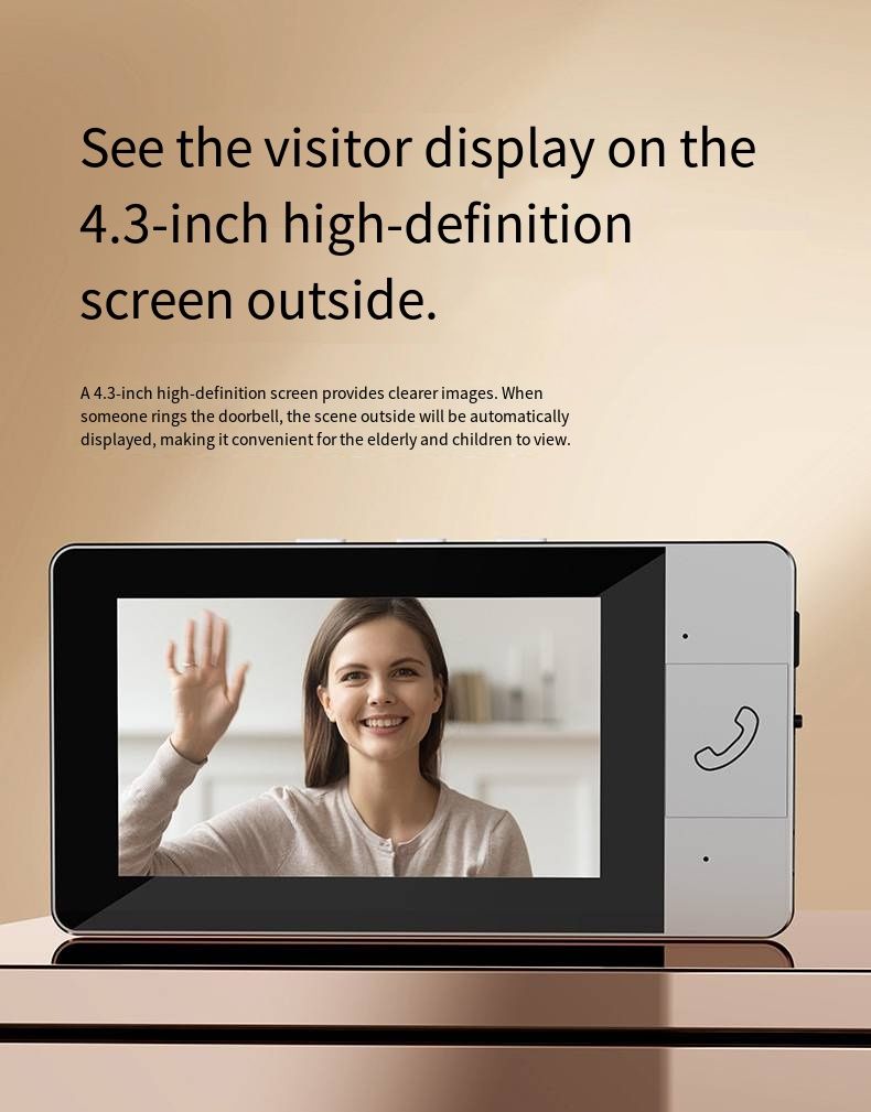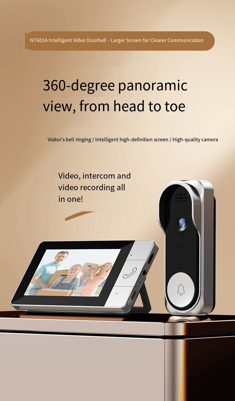 Guard Your Family Every Moment! NT601A 2.4G Wireless Video Doorbell features easy installation with no wiring and no WiFi required. Equipped with a 4.3-inch HD large display and a 30W high-definition camera, it delivers real-time monitoring and clear visuals. It supports two-way video and audio intercom, built-in large-capacity battery for long endurance, and 128GB extended storage. This smart home security access control device is the perfect safety guardian for every household.