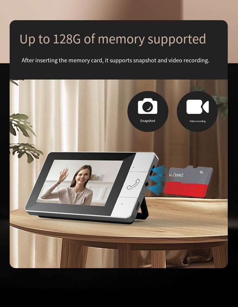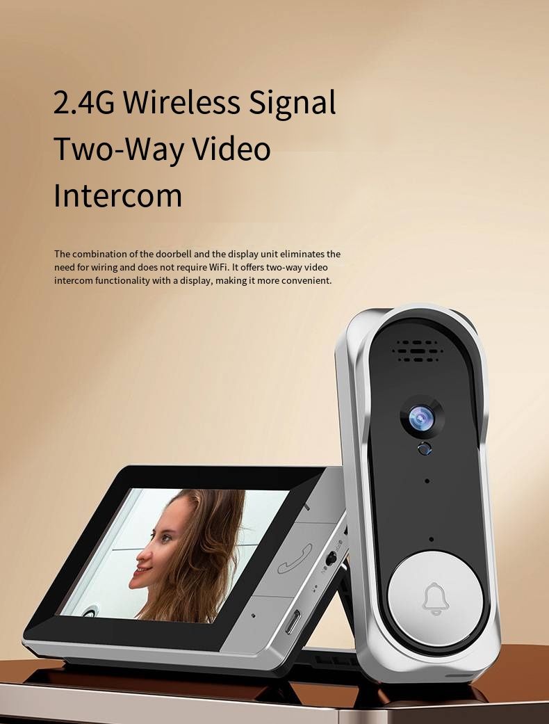 NT601A 2.4G Wireless Video Doorbell is designed to bring all-around safety to your home. Adopting stable 2.4G wireless transmission, it frees you from complex wiring and WiFi dependence, allowing quick and easy installation for everyone. Built with a 4.3-inch high-definition large screen and a 30W HD camera, it clearly shows every visitor and records real-time footage. It supports smooth two-way video and audio intercom, so you can communicate with guests conveniently. Equipped with a high-capacity battery for long endurance and 128GB extended storage, it meets daily security needs perfectly. This smart home security access control device is widely used in houses and apartments, becoming a trustworthy guardian that protects your family 24/7.