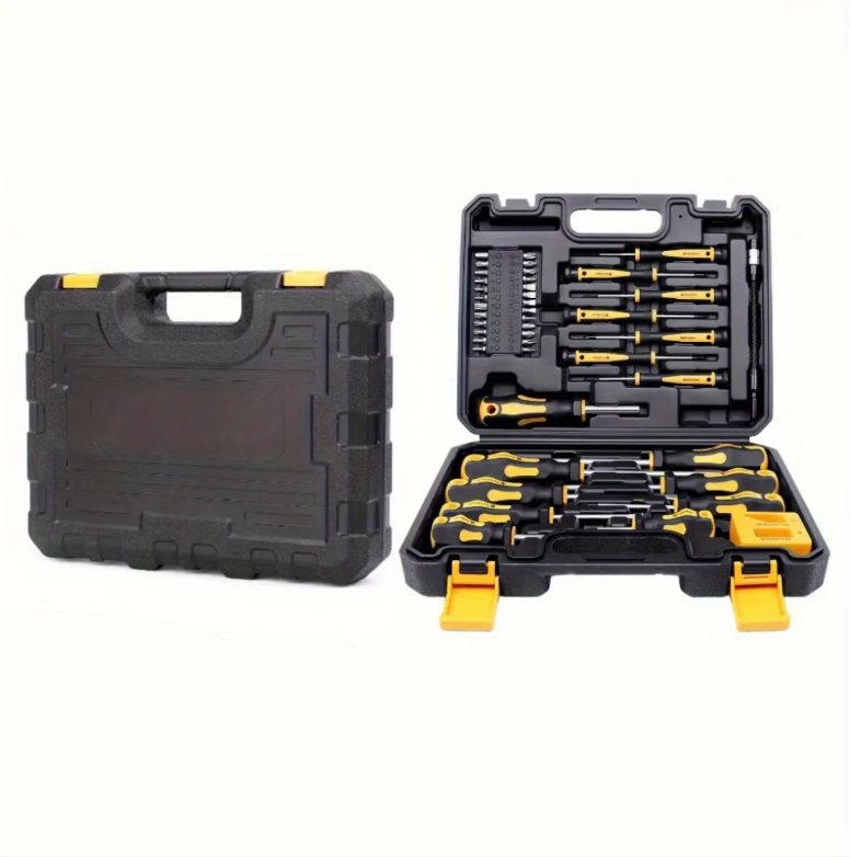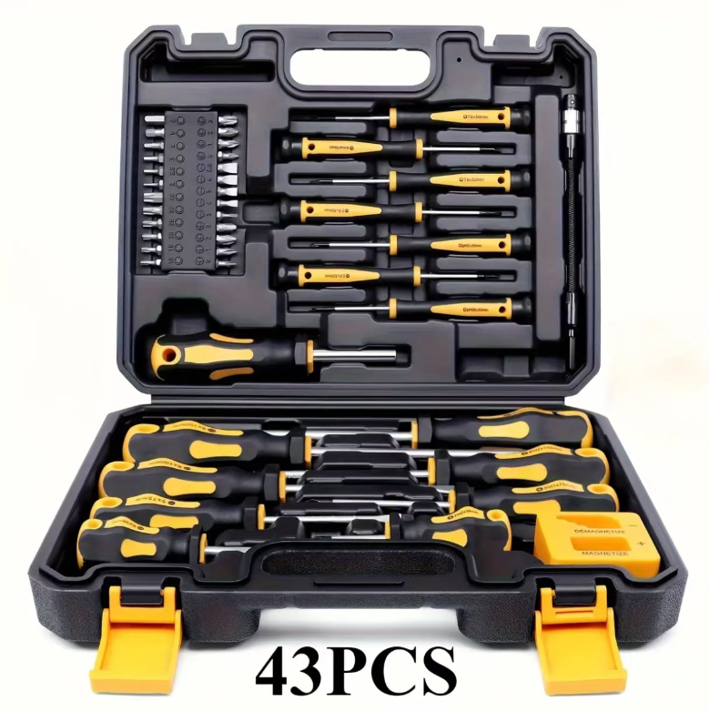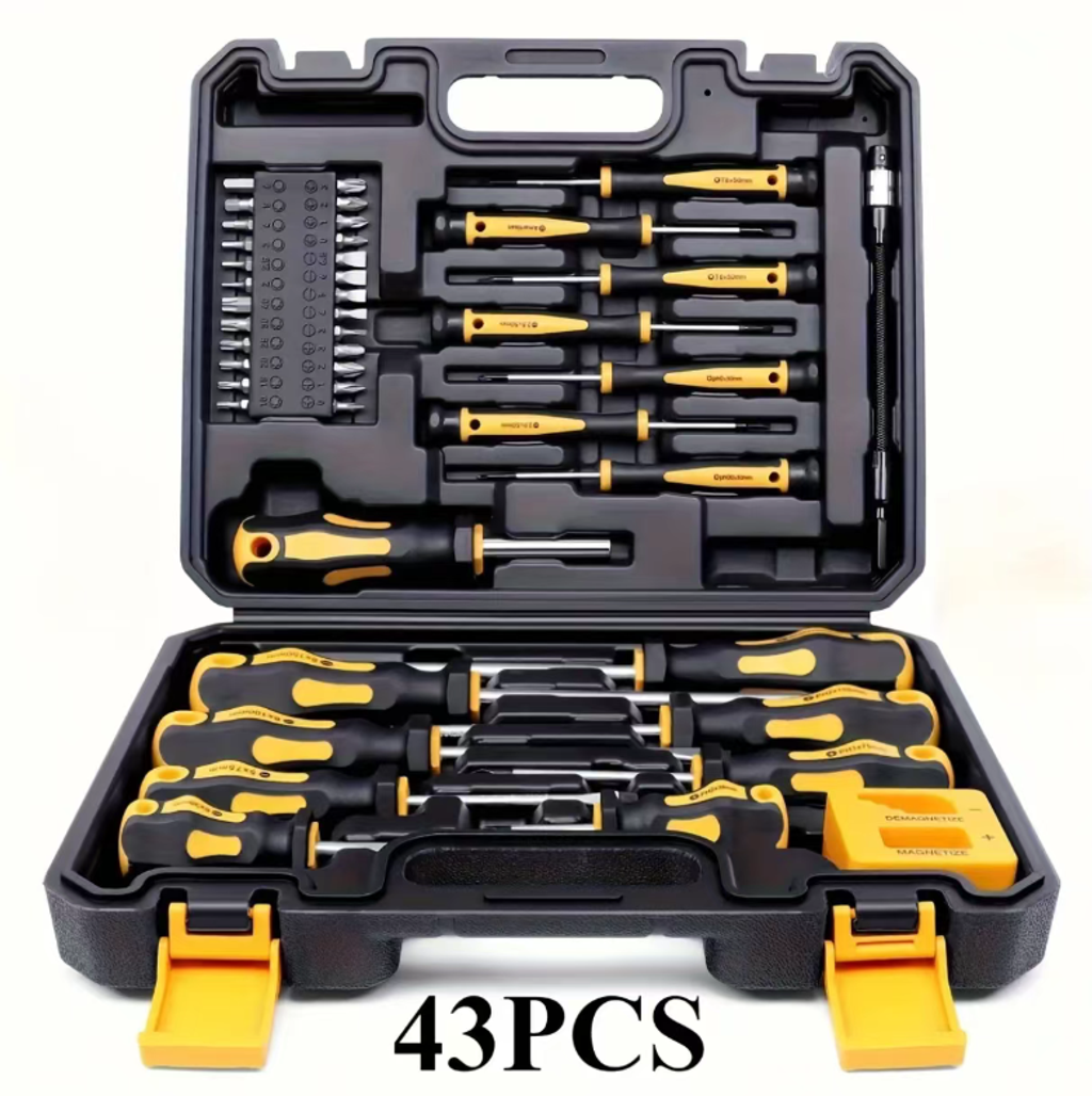 This 43-piece magnetic screwdriver set covers all scenarios for maintenance and is fully compatible with various situations. The strong magnetic tip has a stable adhesion and won't slip off. The chrome-vanadium steel material is durable and sturdy. The ergonomic handle provides a comfortable operation. It is also equipped with a custom storage box, making it convenient for storage and preventing loss. It is an all-in-one tool suitable for household maintenance and DIY projects.