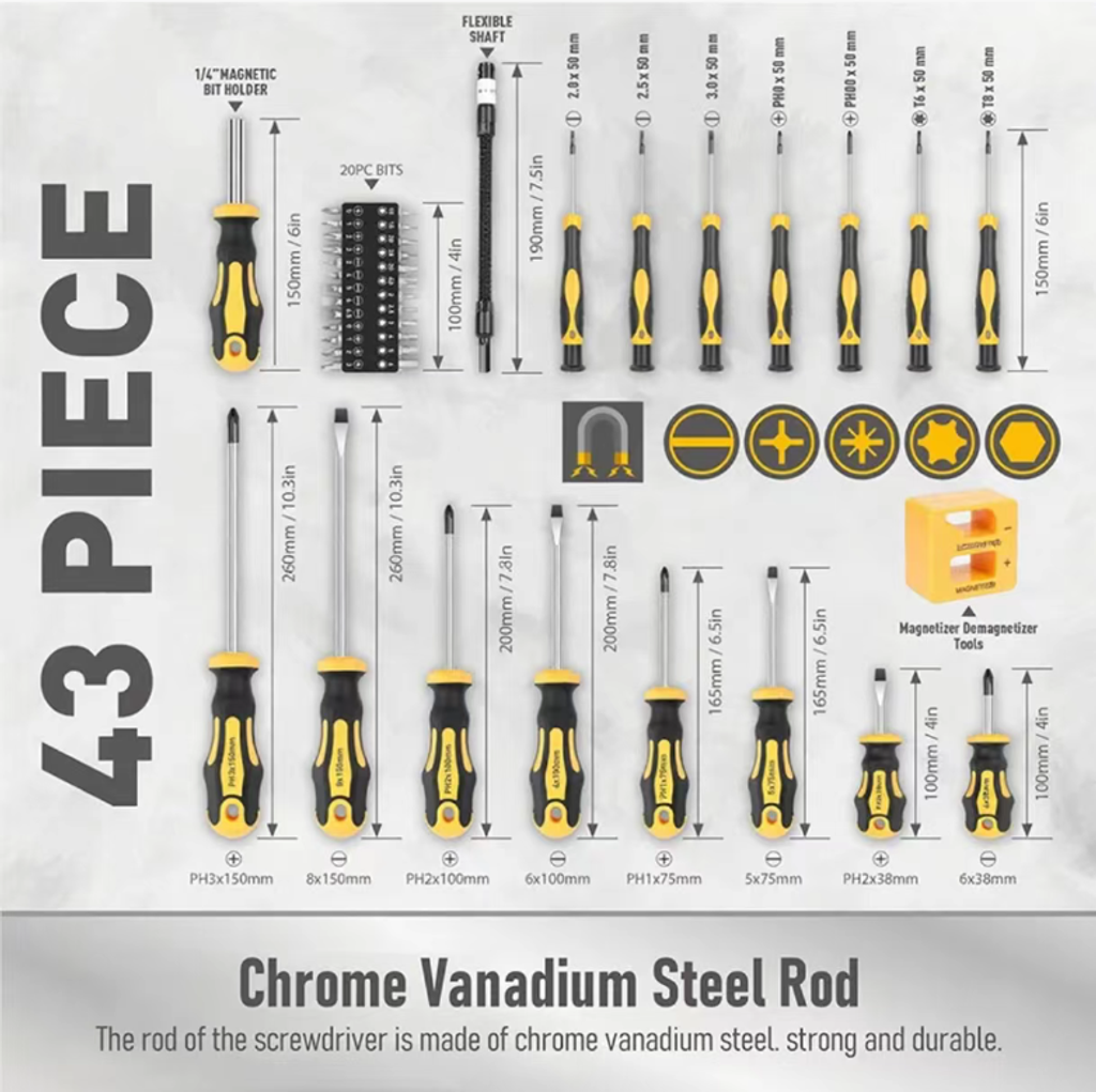 - 43-piece magnetic screwdriver set tool