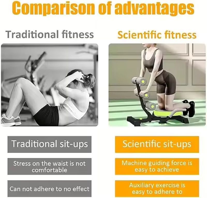 This multi-functional abdominal shaping machine is specially designed for modern families to achieve a well-defined waistline. It is an efficient tool for core training. It innovatively adopts a 360° rotating seat pan and is combined with three adjustable thick foam cushions, which precisely fit the waist and back, providing all-round support. It completely eliminates the problems of neck strain and improper force application caused by traditional sit-ups.