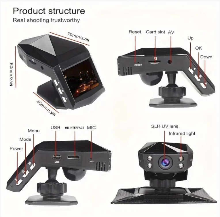 Uses USB direct power supply, installation is simple, no complex wiring required, compatible with most family car models. The body is equipped with a high-definition display screen, real-time viewing of the recorded picture, intuitive and convenient operation buttons, even the elderly can easily operate, it is a necessary safety good for car owners.