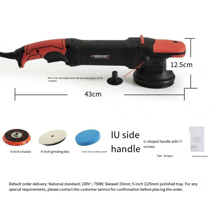 The 125mm self-adhesive polishing disc design allows for quick replacement without tools, with a secure and non-detachable adhesion. It is compatible with various polishing pads and abrasives. The side-mounted U-shaped auxiliary grip + anti-slip rubber grip facilitate coordinated operation with both hands, allowing for precise control of the polishing angle and improving operation efficiency and product accuracy.