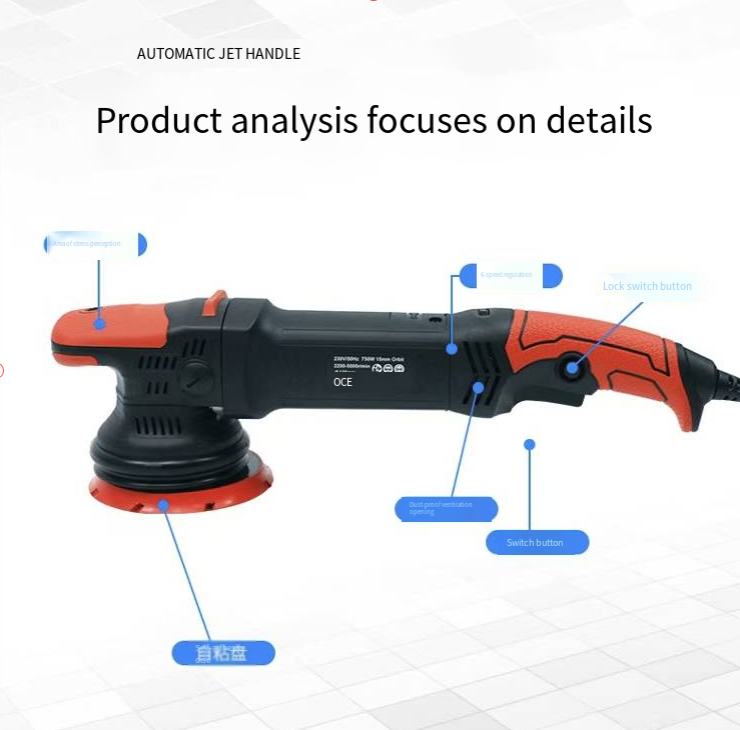 Equipped with six adjustable speeds, it can freely switch from low-speed polishing to high-speed grinding, meeting the needs of various processes such as removing scratches, restoring a mirror finish, and applying wax and sealant. It has an internal constant speed module, which can automatically adjust the speed according to the pressure, maintaining stable operation and avoiding uneven polishing due to changes in force, improving the consistency of the paint surface effect.