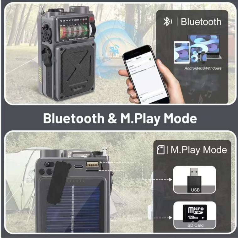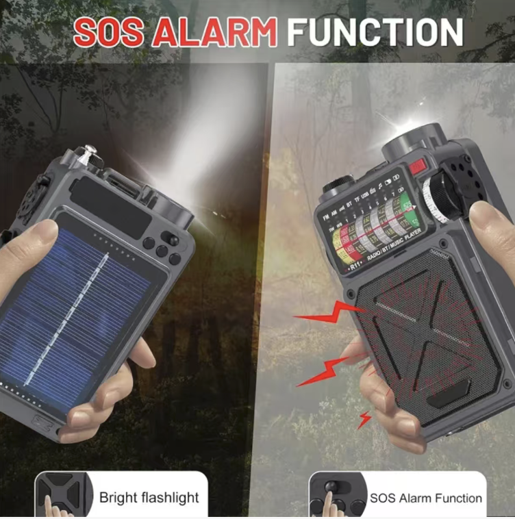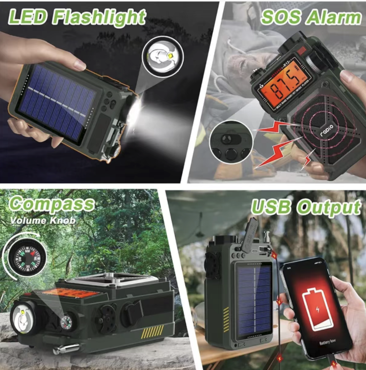 Are you still anxious about power outages, internet disconnections, outdoor disconnections, insufficient emergency lighting, and scattered survival equipment? This multi-functional disaster-prevention emergency radio integrates all-band radio reception, solar power/solar-powered hand-crank power generation, emergency lighting, power bank, and compass functions. It is a hardcore survival equipment for family disaster prevention, outdoor exploration, and doomsday survival, allowing you to maintain communication, obtain information, and ensure safety in extreme environments.