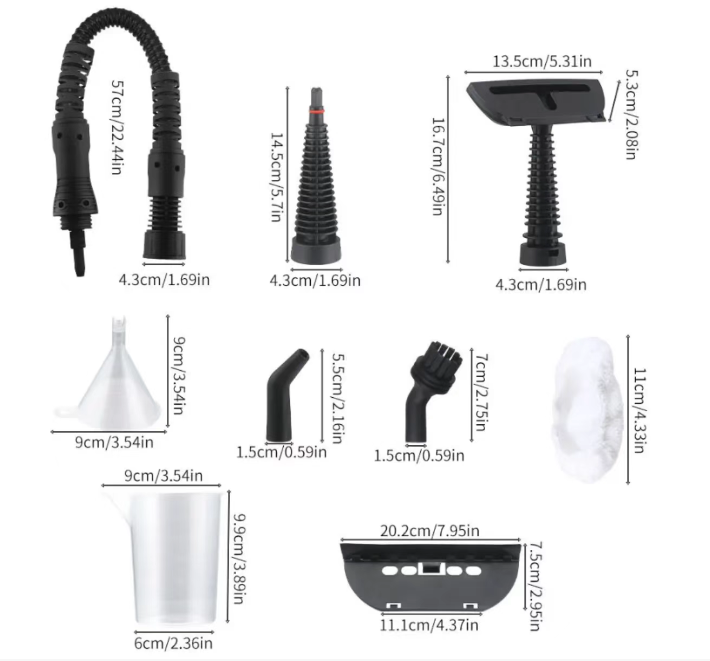 It comes with an extended hose, cleaning brushes, a floor cleaning head, and other accessories, allowing you to flexibly switch between different cleaning scenarios: kitchen range hoods, stove grease, bathroom sinks, tile grout, air conditioners, and appliance crevices. One machine can handle the entire house, eliminating the need for multiple tools.