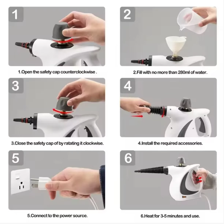 The ergonomic handheld design is comfortable to hold and does not tire your hands even during long cleaning sessions. The transparent water tank allows you to observe the water level in real time, and refilling is convenient. It is easy to operate for household cleaning, even for beginners.