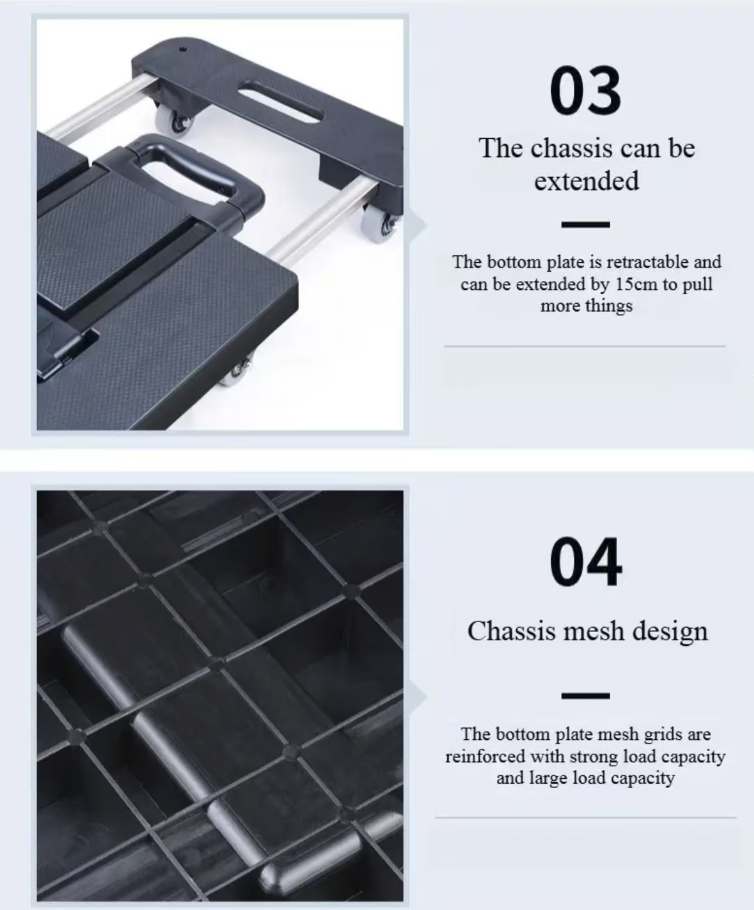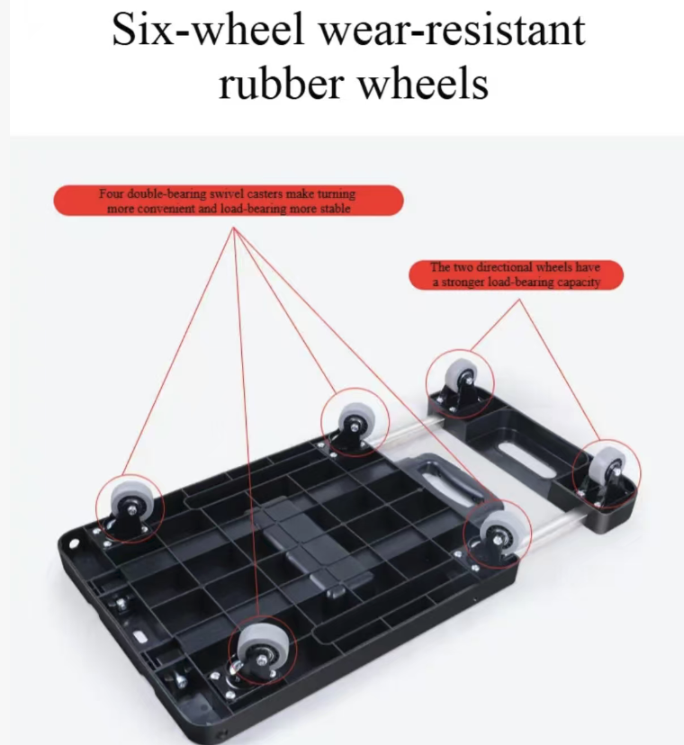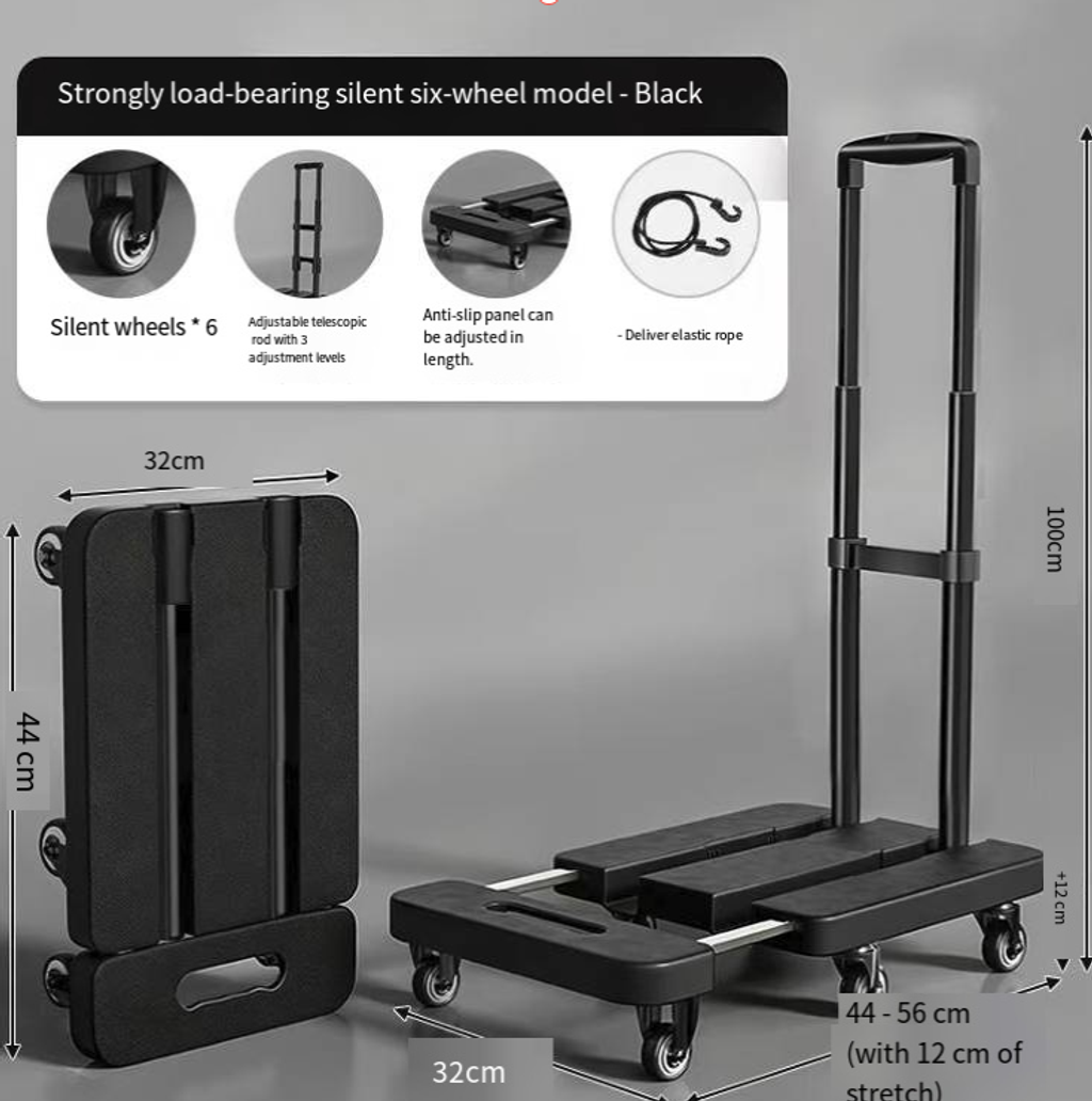 This six-wheel telescopic folding cart is not just a small vehicle; it is your "lifting helper" for daily life. With the design of silent load-bearing and portable folding, it breaks through the limitations of lifting, making every heavy object lifting task effortless, efficient, and worry-free.