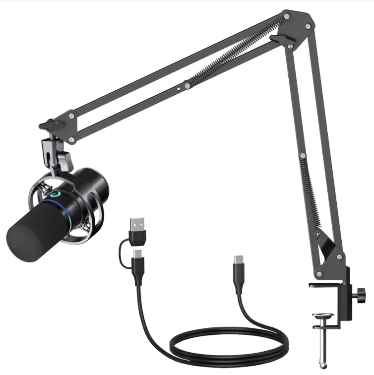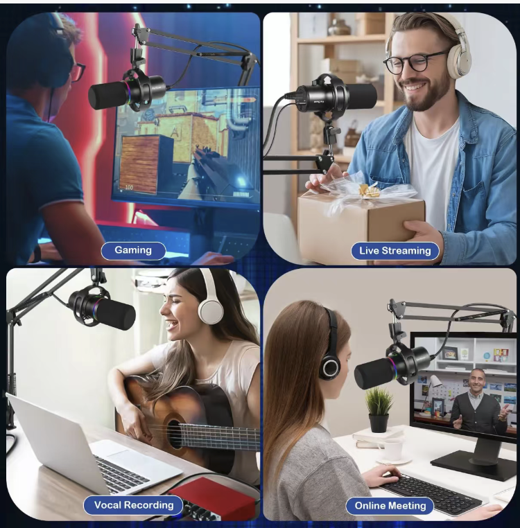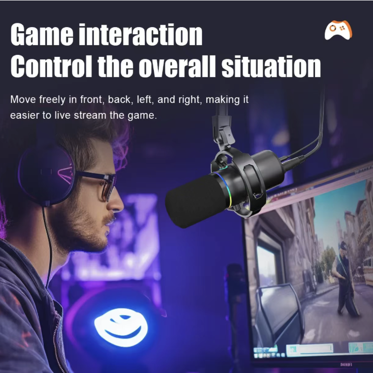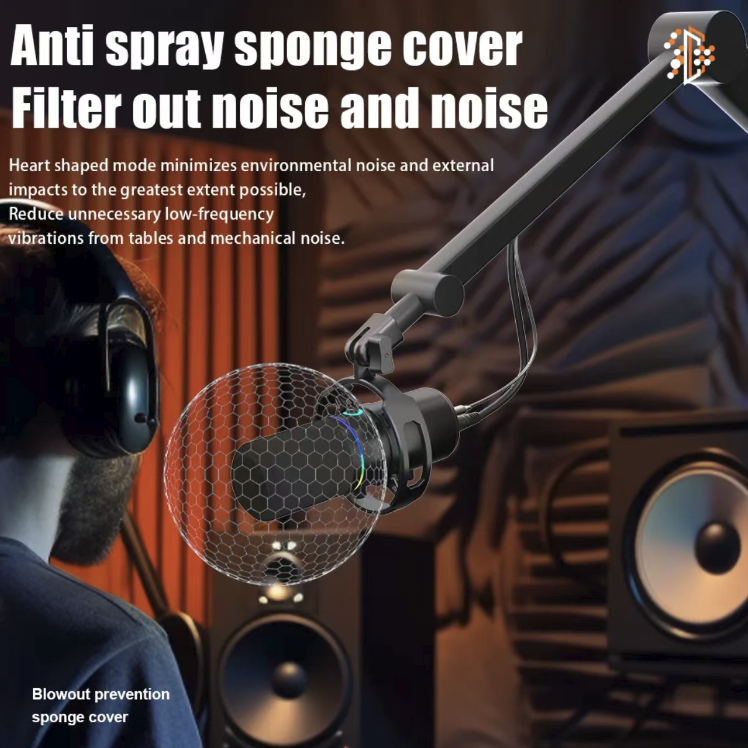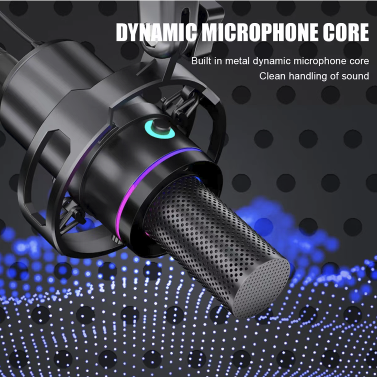 Still bothered by noisy live streaming audio, unclear gaming voice, high background noise in recordings, and complicated device connections? This RGB dynamic USB microphone integrates professional dynamic pickup, RGB color-changing lights, USB plug-and-play, noise reduction, and a swing arm stand set, providing a one-stop audio solution for live streaming, gaming, recording, and content creation. It ensures every sound is clear and full of quality.