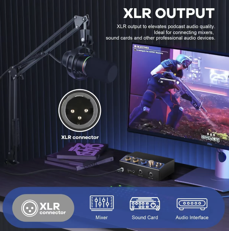 Equipped with a high-quality dynamic microphone head and a cardioid pickup pattern, it accurately captures the human voice and effectively blocks out environmental noise, keyboard sounds, echoes, and electrical noise. Even in a desktop environment, it can produce a clean and clear voice. Whether for live streaming, gaming, dubbing, or recording, it delivers a full and transparent sound quality, eliminating noisy background noise and making the voice more engaging.