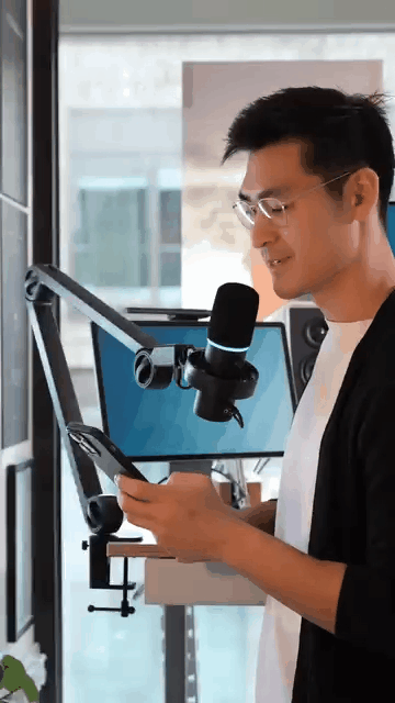 It comes with a height and angle adjustable swing arm stand and a shock mount, allowing you to precisely position the microphone and reduce noise caused by desktop vibrations. The stand is made of thick metal, stable and non-shaking, and does not occupy much desktop space. It is suitable for various scenarios such as desktop live streaming, gaming, and recording, creating a professional audio environment.