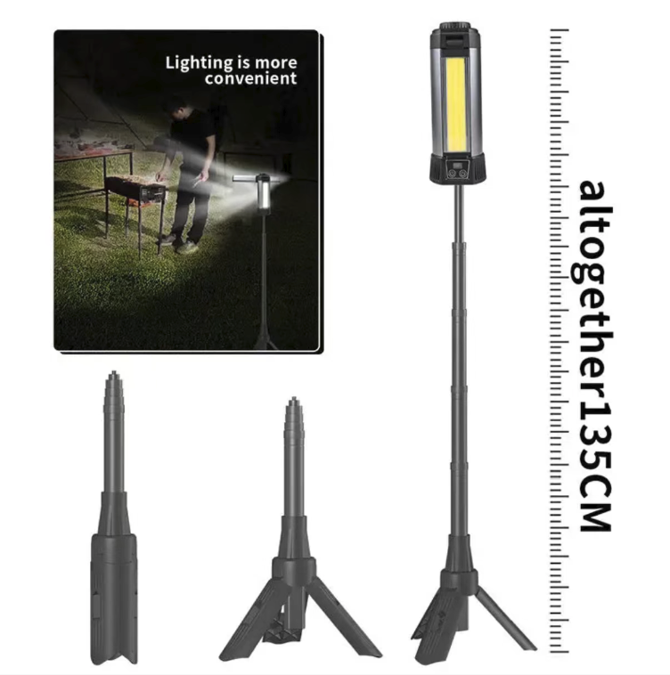 Still bothered by insufficient brightness, limited scenarios, short battery life and troublesome storage of outdoor lighting? This stretchable COB floodlight combines high-brightness COB lighting, a telescopic tripod, multi-mode dimming and magnetic quick charging. It is an all-round lighting partner for outdoor camping, engineering work and emergency lighting, allowing you to carry light with you and fear no darkness.